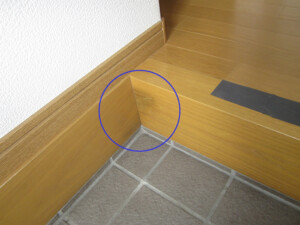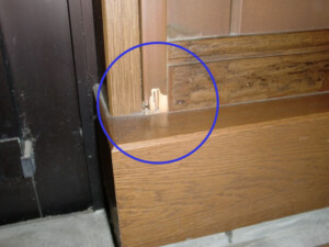 外観上は、若干「造作材」の表面がはげ落ちている程度であったり、黒ずんでいる程度で、さほどの変化が見られないとしても、この部分を指で触ってみるとフカフカした状態で内部はシロアリの食害を受け空洞化しています。